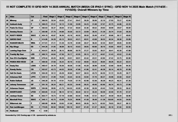 2026 Gunfight in Dixie- TN State Blackpowder Championship and 2025 Scores